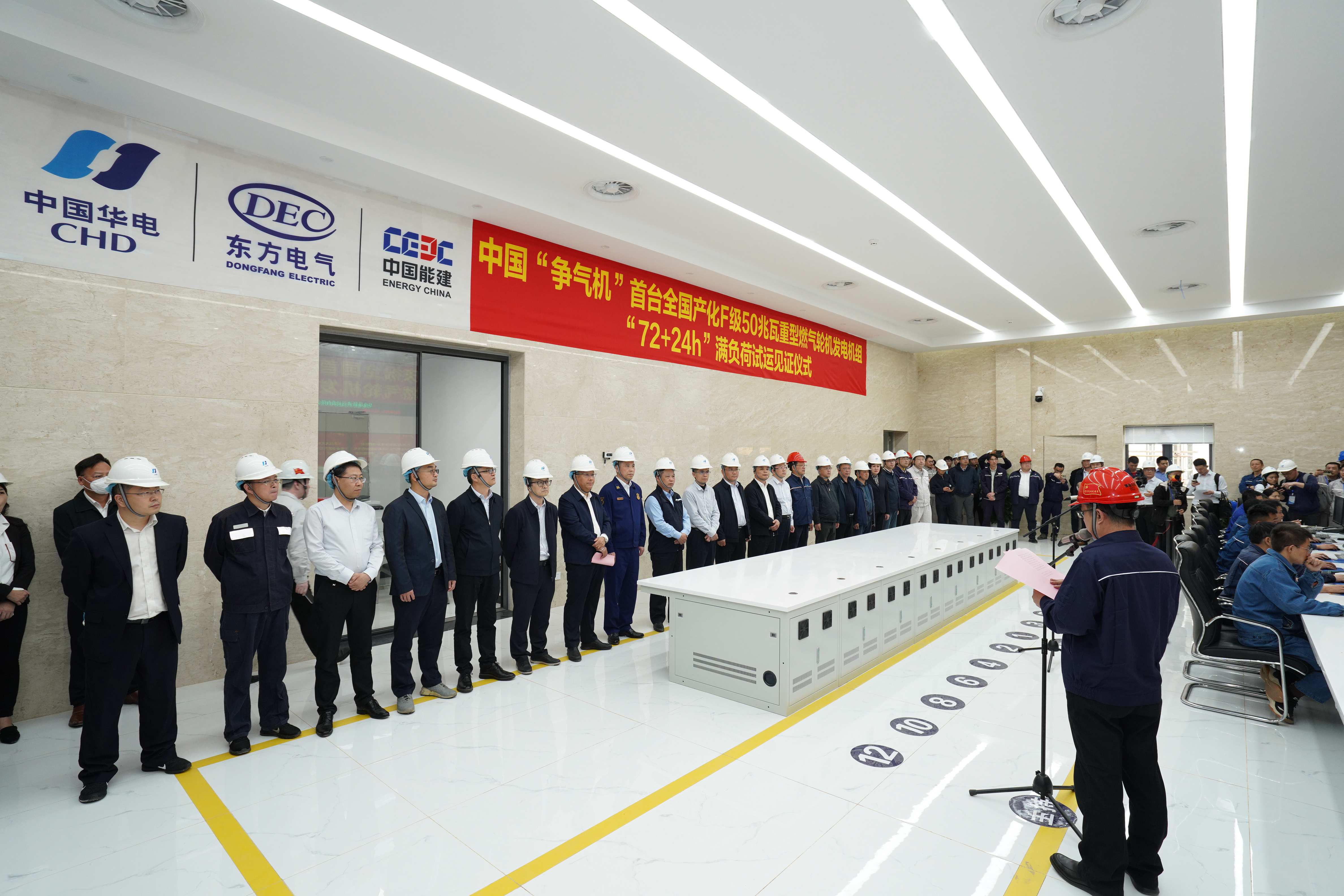 东方电气自2009年开始,历时十三载自主研制,累计投入资金近20亿元,汇聚优势资源、组建科研团队,率先在国内开展具有完全自主知识产权的F级50兆瓦重型燃气轮机研制,2016年建成国内首批压气机、燃烧器、透平部件级试验台,2018年相继研制成功压气机、燃烧器,2019年实现全部高温部件的100%自主制造,整机点火试验一次成功,2020年首次运行至100%负荷,2022年底在华电清远实现一次点火成功,2023年正式转入商业运行。东方电气解决“卡脖子”关键核心技术难题,实现“0”到“1”的突破,全面攻克了燃气轮机自主研制、试验全过程技术,建设了自主的F级燃机设计体系,掌握了燃气轮机核心部件与整机总体性能、总体结构的设计方法,构建自主知识产权的设计规范、软件和数据库,获得授权发明专利136项,参与制订国家/行业标准6项,形成燃机设计/制造标准超1000项,建成行业唯一的清洁高效透平动力装备全国重点实验室,F级50兆瓦重型燃气轮机更是两次获评“央企十大国之重器”。