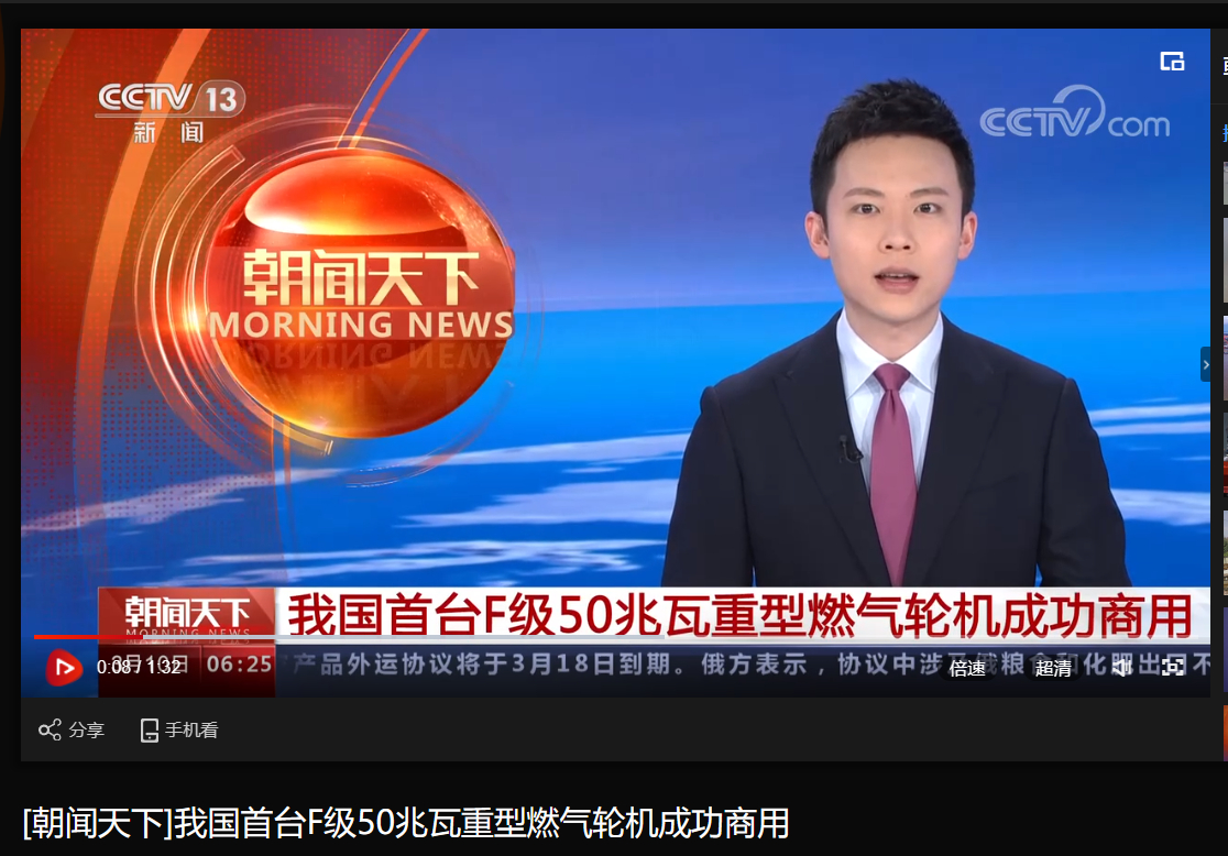 [央视新闻]我国首台F级50兆瓦重型燃气轮机成功商用