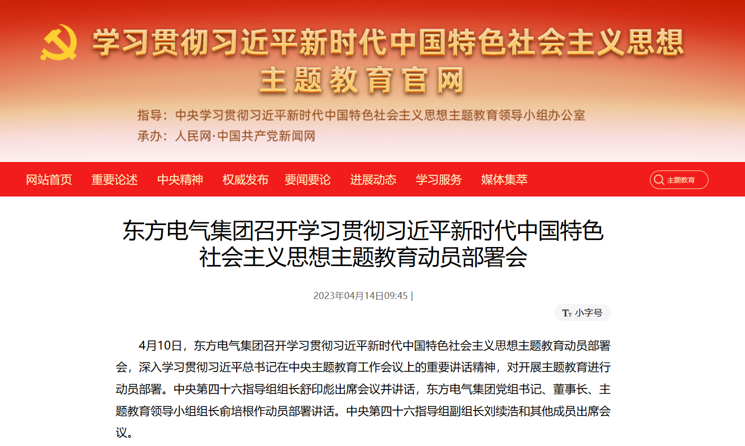 [主题教育官网]东方电气集团召开学习贯彻习近平新时代中国特色社会主义思想主题教育动员部署会