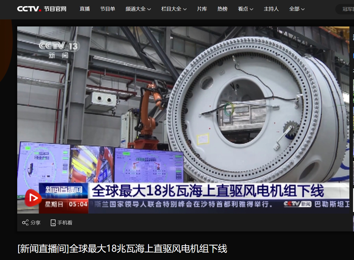 [央视新闻直播间]全球最大18兆瓦海上直驱风电机组下线