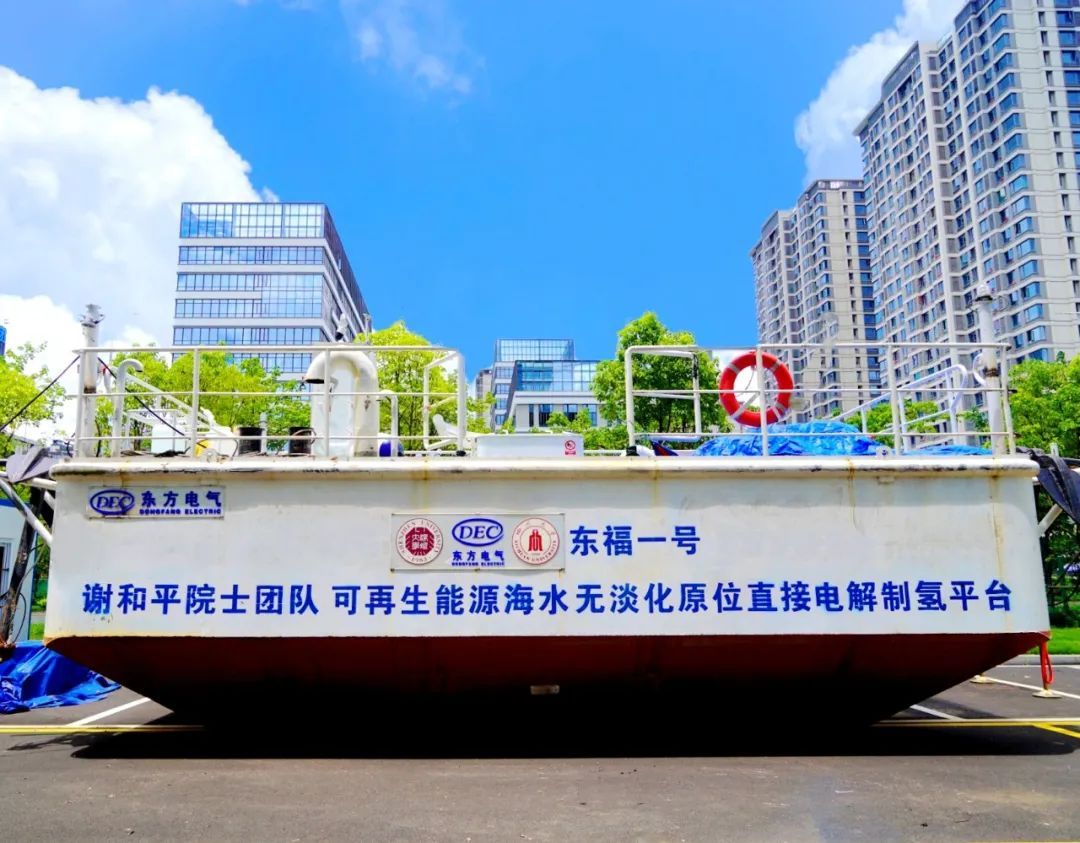福州秋高气爽,由东方电气集团与中国工程院谢和平院士团队联合研制的全球首套与可再生能源相结合的漂浮式海上制氢平台“东福一号”,在蓝天白云的衬托下,形成一道令人震撼的风景线。前不久,全球首次海上风电无淡化海水原位直接电解制氢技术海上中试获得成功。“东福一号”在稳定运行240小时后,顺利“着陆”。