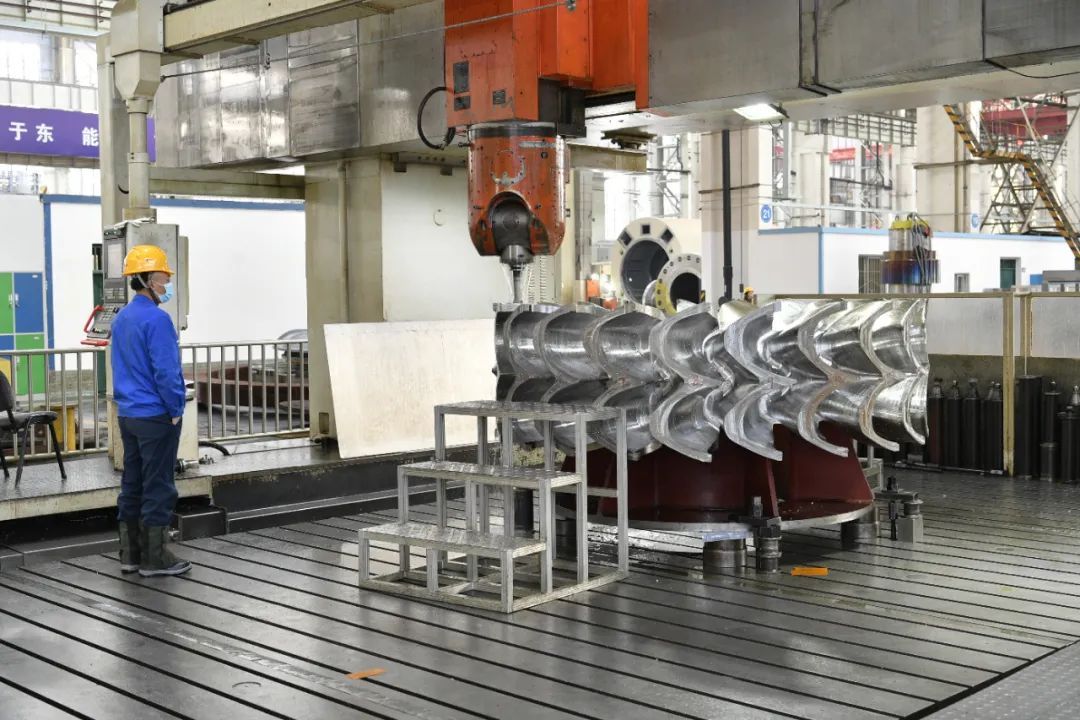 面向国家“加快西南水电基地建设”的重大战略需求,东方电气制定了150兆瓦级大型冲击式转轮研制、500兆瓦级巨型冲击式机组研制、700-1000兆瓦级高水头大容量巨型冲击式机组研制的“三步走”攀登计划。自2019年起,东方电气全力组织开展高水头大容量冲击式水电机组关键核心技术研究,与科研院所、上下游企业联合开展技术攻关,重点、系统、全面突破冲击式水电机组研制“卡脖子”难题,建立起内部多专业融合创新、内外协同合作共赢的优质高效研制模式,形成了大型冲击式转轮研发、设计、制造、检验全过程技术体系。