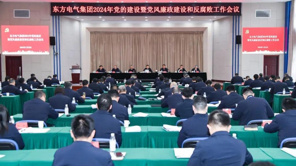 1月22日,东方电气集团召开2024年党的建设暨党风廉政建设和反腐败工作会议。会议以习近平新时代中国特色社会主义思想为指导,深入学习贯彻落实党的二十大精神以及二十届中央纪委三次全会精神,总结集团公司2023年党的建设、全面从严治党工作,安排部署2024年重点任务。集团公司党组领导俞培根、宋致远、刘智全、孙国君、袁明刚、张彦军、李忠军出席会议。