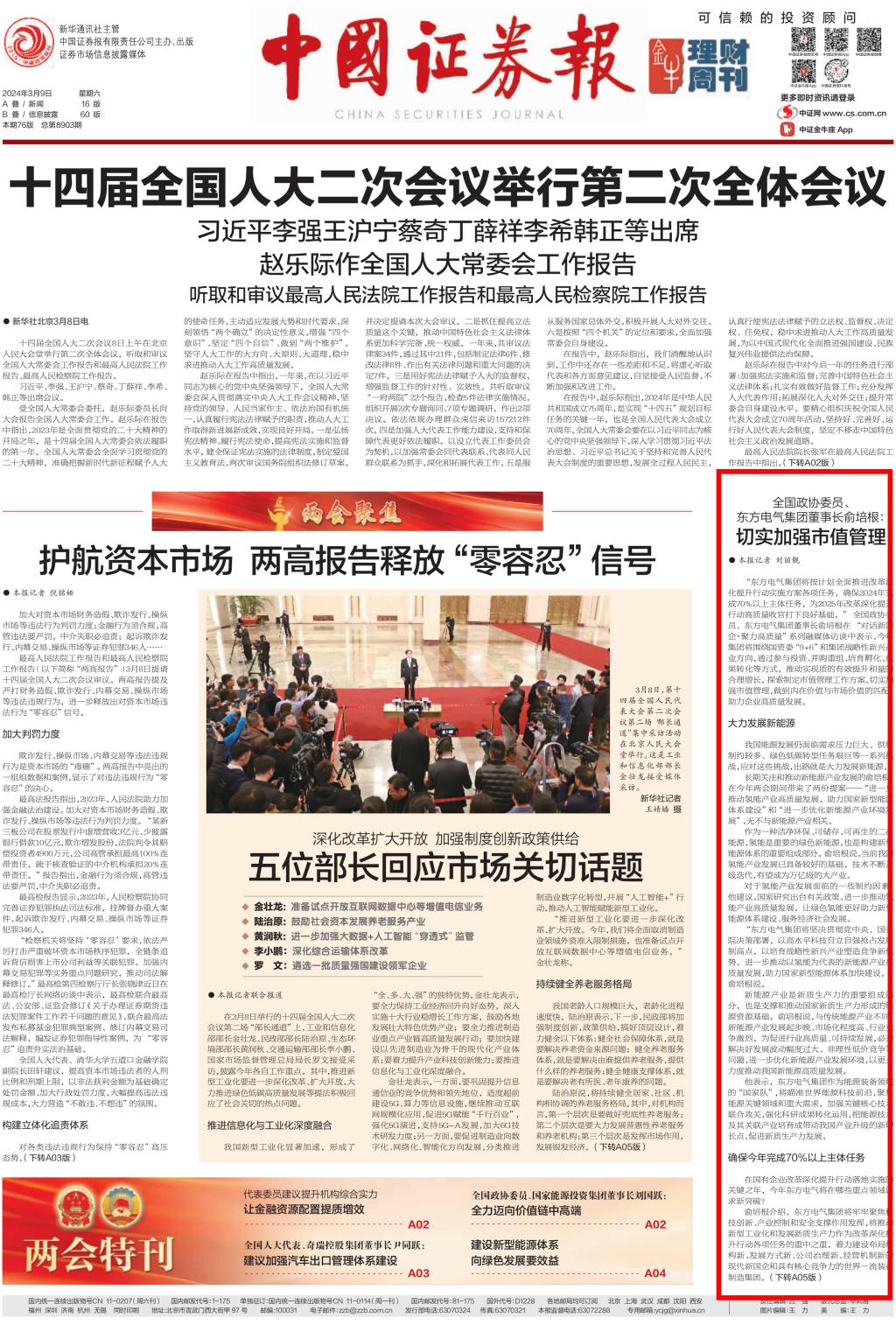 [中国证券报]全国政协委员东方电气集团董事长俞培根:切实加强市值管理
