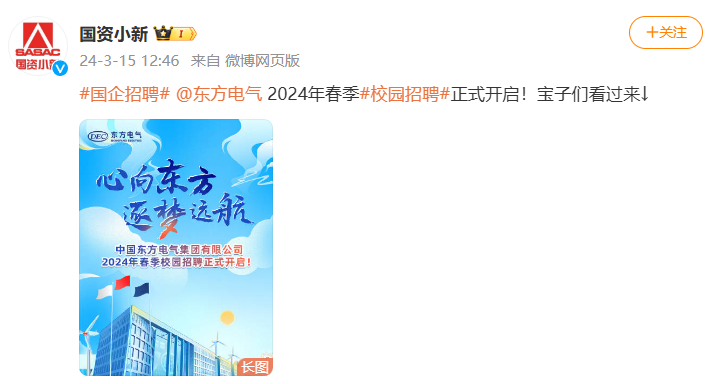 [国资小新]#国企招聘# @东方电气 2024年春季#校园招聘#正式开启!宝子们看过来↓