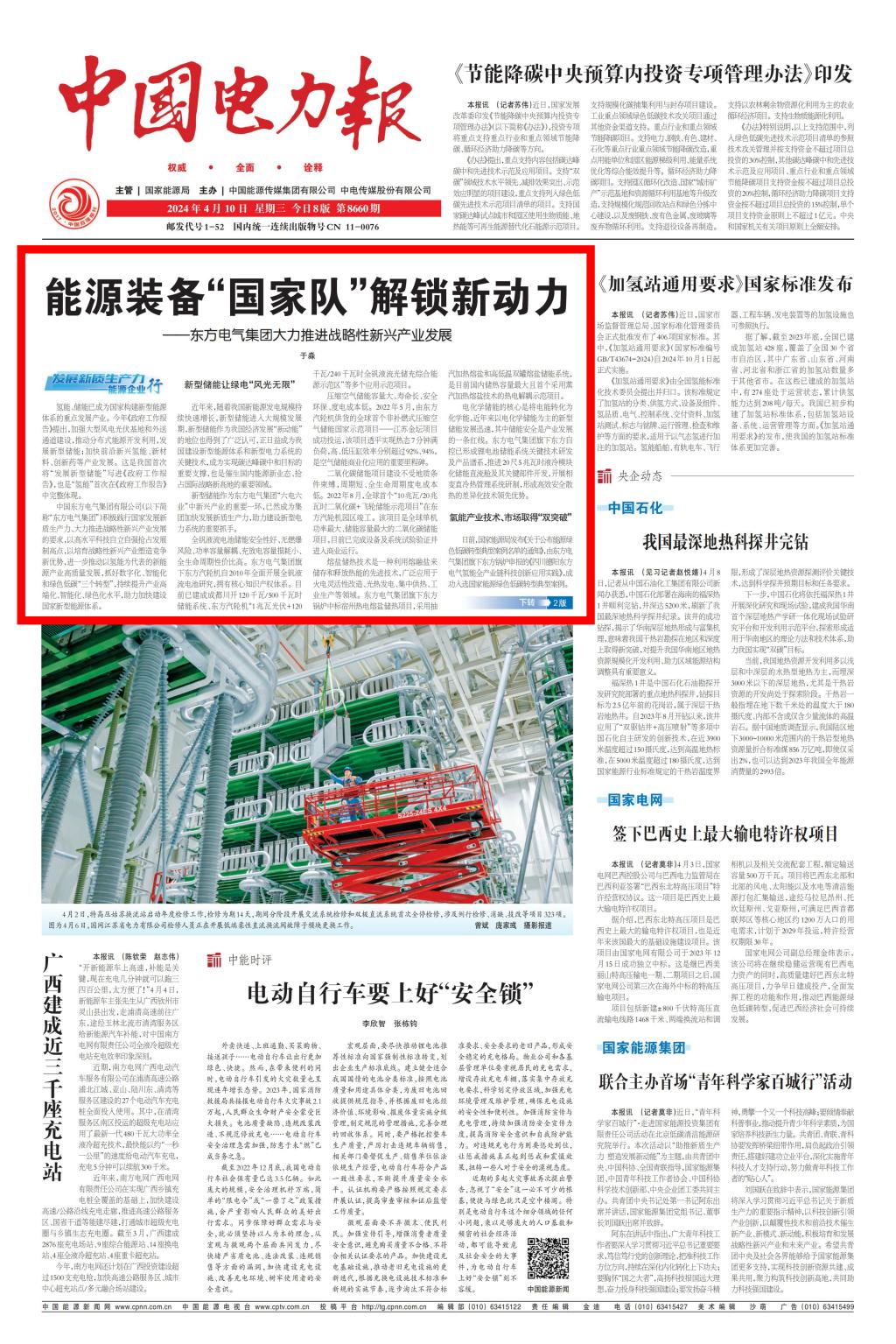 [中国电力报]东方电气集团:能源装备“国家队”解锁新动力 | 发展新质生产力 能源企业行