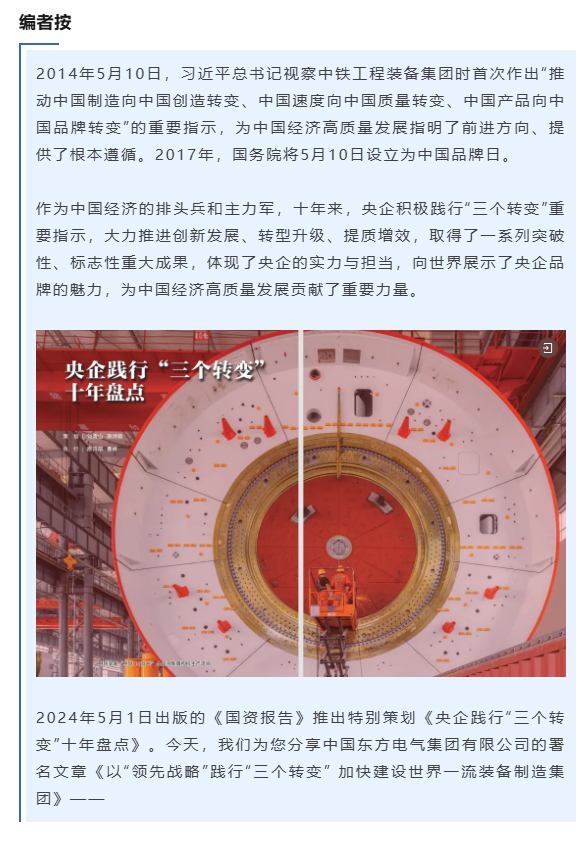 东方电气集团深入实施领先战略,推动“质量立企”向“质量强企”“质量领先”迈进。