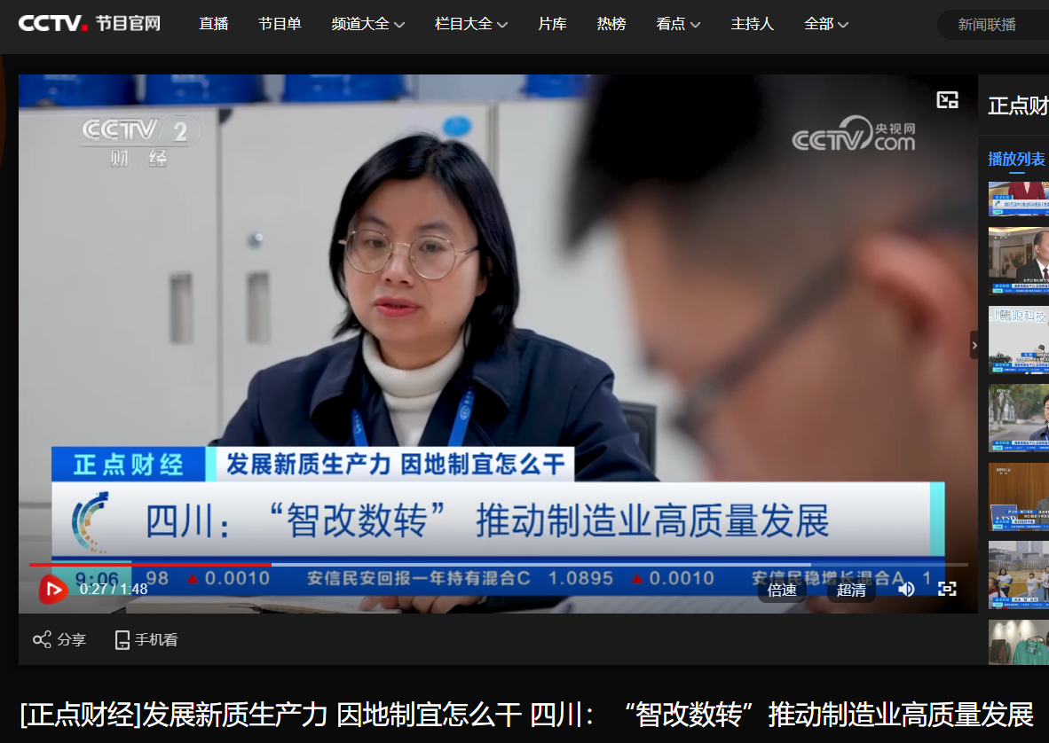 [央视正点财经]发展新质生产力 因地制宜怎么干 四川:“智改数转”推动制造业高质量发展
