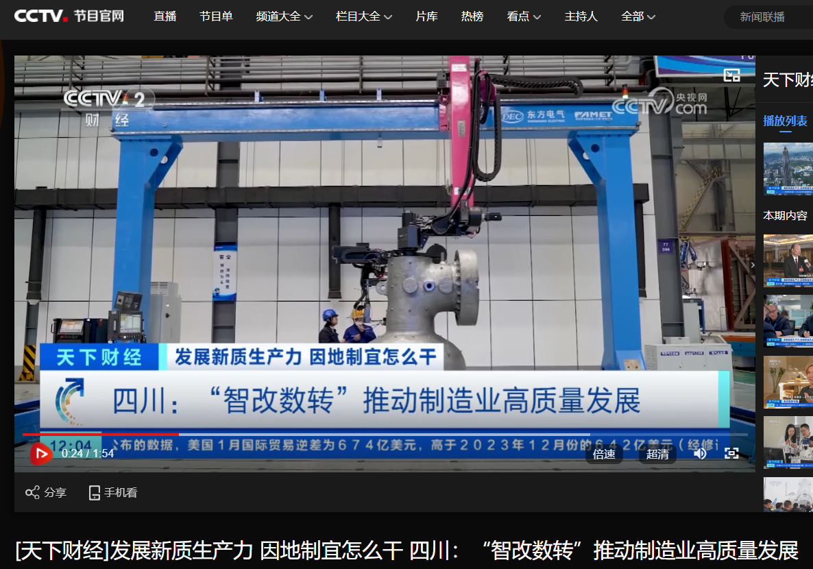 [央视天下财经]发展新质生产力 因地制宜怎么干 四川:“智改数转”推动制造业高质量发展