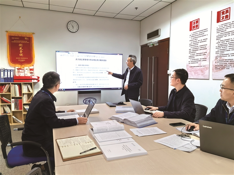 图为东方电气集团供应商管理专项治理综合组工作人员正在进行专项研讨。 东方电气集团纪检监察组供图