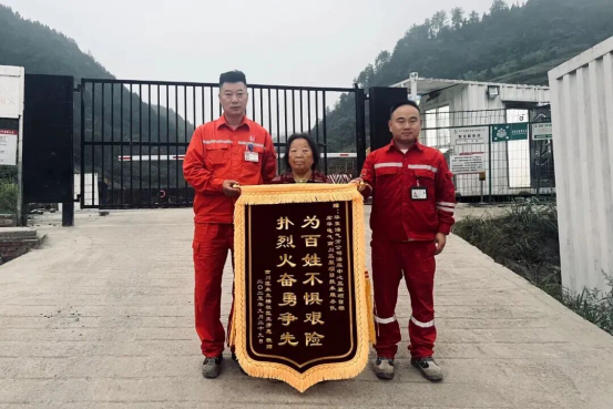 为东方宏华压裂泵服务队专门送来锦旗。