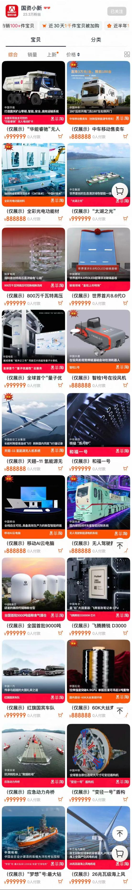 可以看到,今年“国资小新”在淘宝共上架20件大国重器,涉及信息技术、人工智能、航空航天、新能源、新材料、高端装备、量子科技等多个领域。其中8件带有“全球首个”或“全球之最”标签、7件拥有“国内首个”或“国内之最”称号。