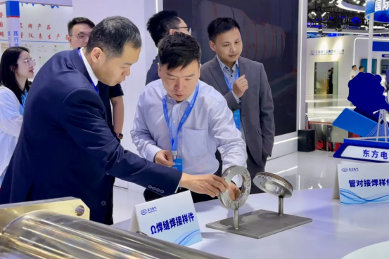 在东方电气集团展台,股份公司副总裁但军热情接待了生态环境部核设施安全监管司副司长罗建军、广东省能源局副局长黄江江、中国能源研究会理事长史玉波以及中核集团、中国华能、国家电投、中国广核集团等单位领导参观。